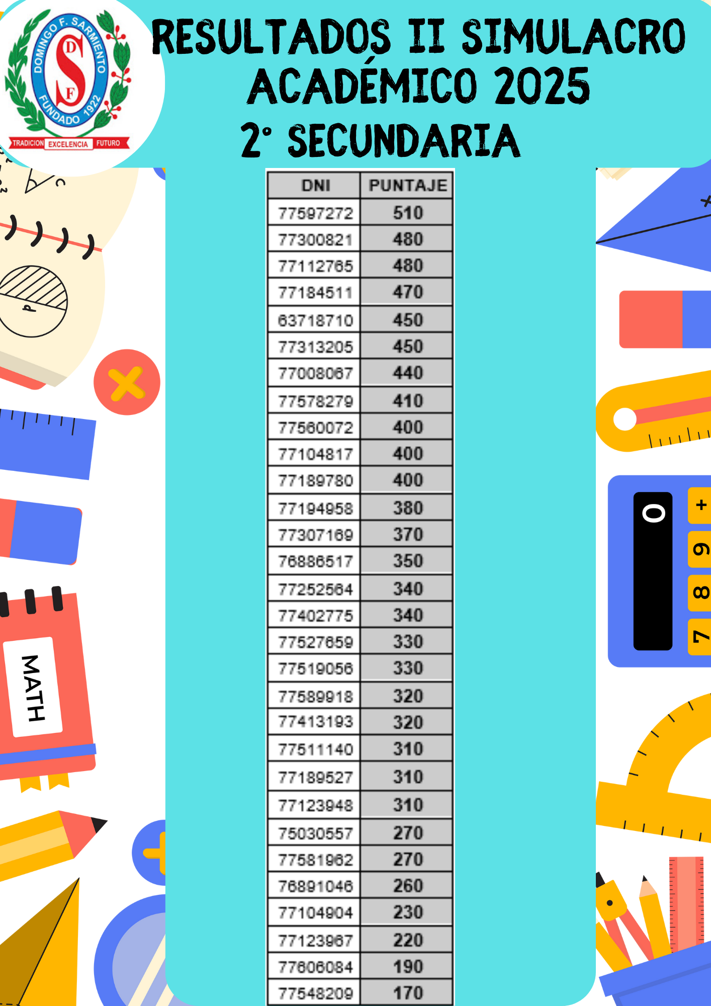 Querida Familia Sarmentina, saludo y agradezco su constante respaldo a nuestra labor escolar. Les informo lo siguiente: