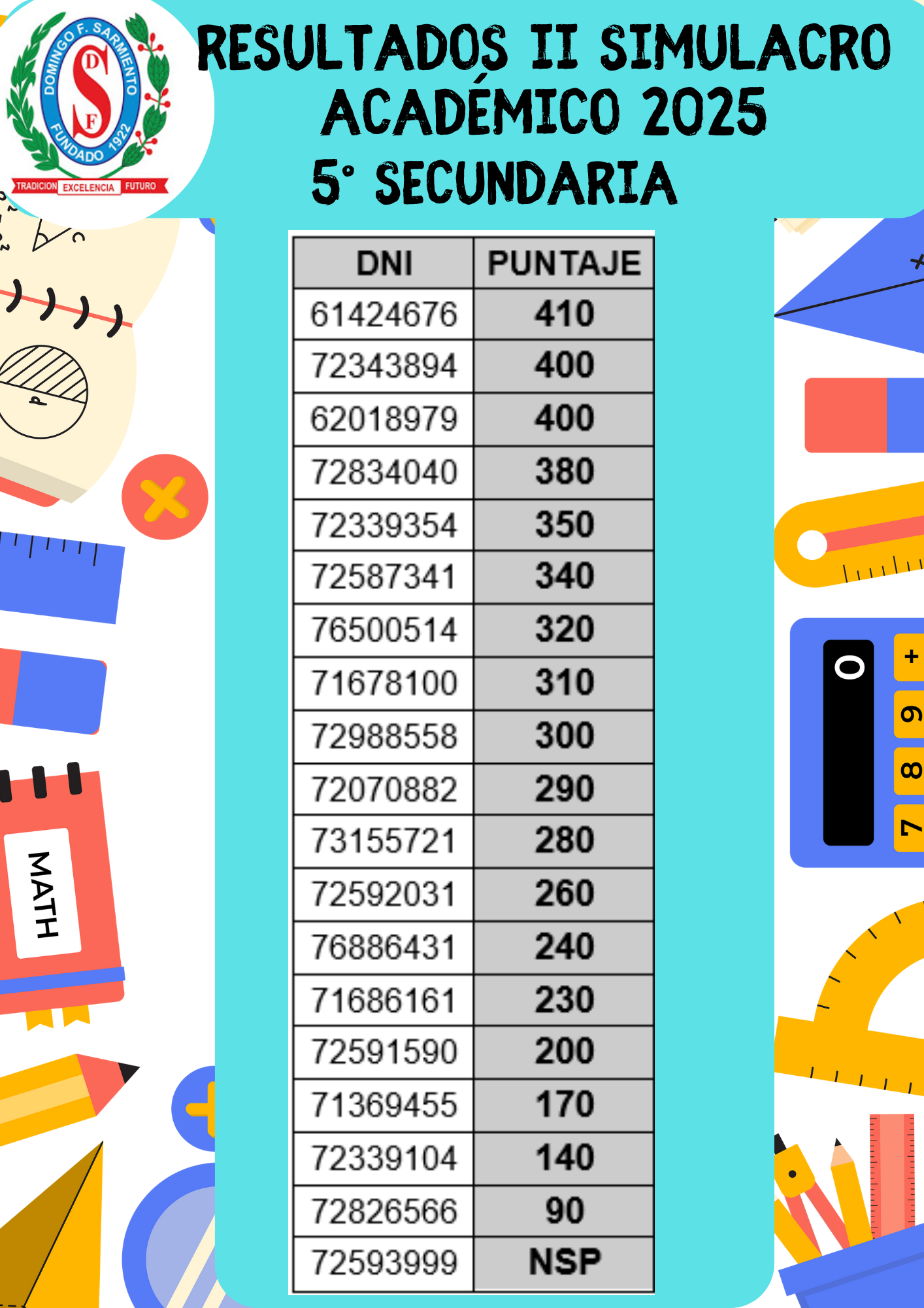 2. SIMULACRO ACADÉMICO: La evaluación tipo examen de admisión se incluye en los calificativos de la 3° unidad. Los resultados se publicarán el viernes 27 en la pagina web.
